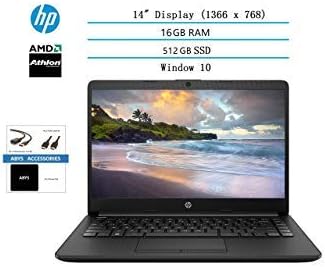 HP 14" HD WLED Backlit Laptop, AMD Athlon Silver 3050U up to 3.2GHz, 16GB DDR4, 512GB SSD, Wireless-AC, HDMI, Bluetooth, Webcam, SD Card Reader, Windows 10, ABYS Bundle