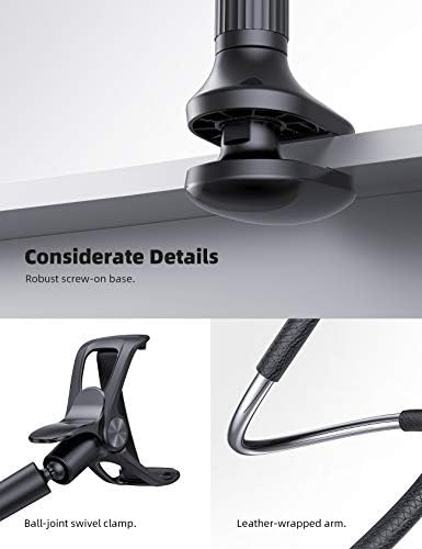 【Easier Angle Adjustment】Thanks to the user-friendly design of the 360-degree ball swivel joint between the arm and phone clamp, you can make some small angle adjustments easily without having to bend the entire snake neck every time to achieve the same purpose.
